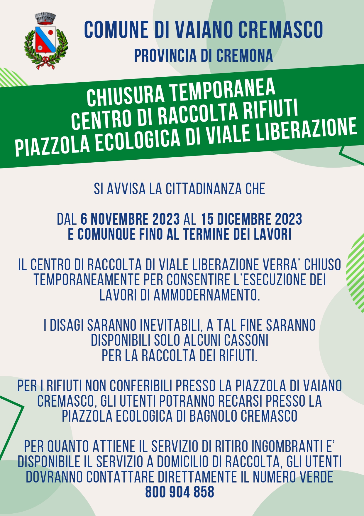 CHIUSURA TEMPORANEA PIAZZOLA ECOLOGICA
