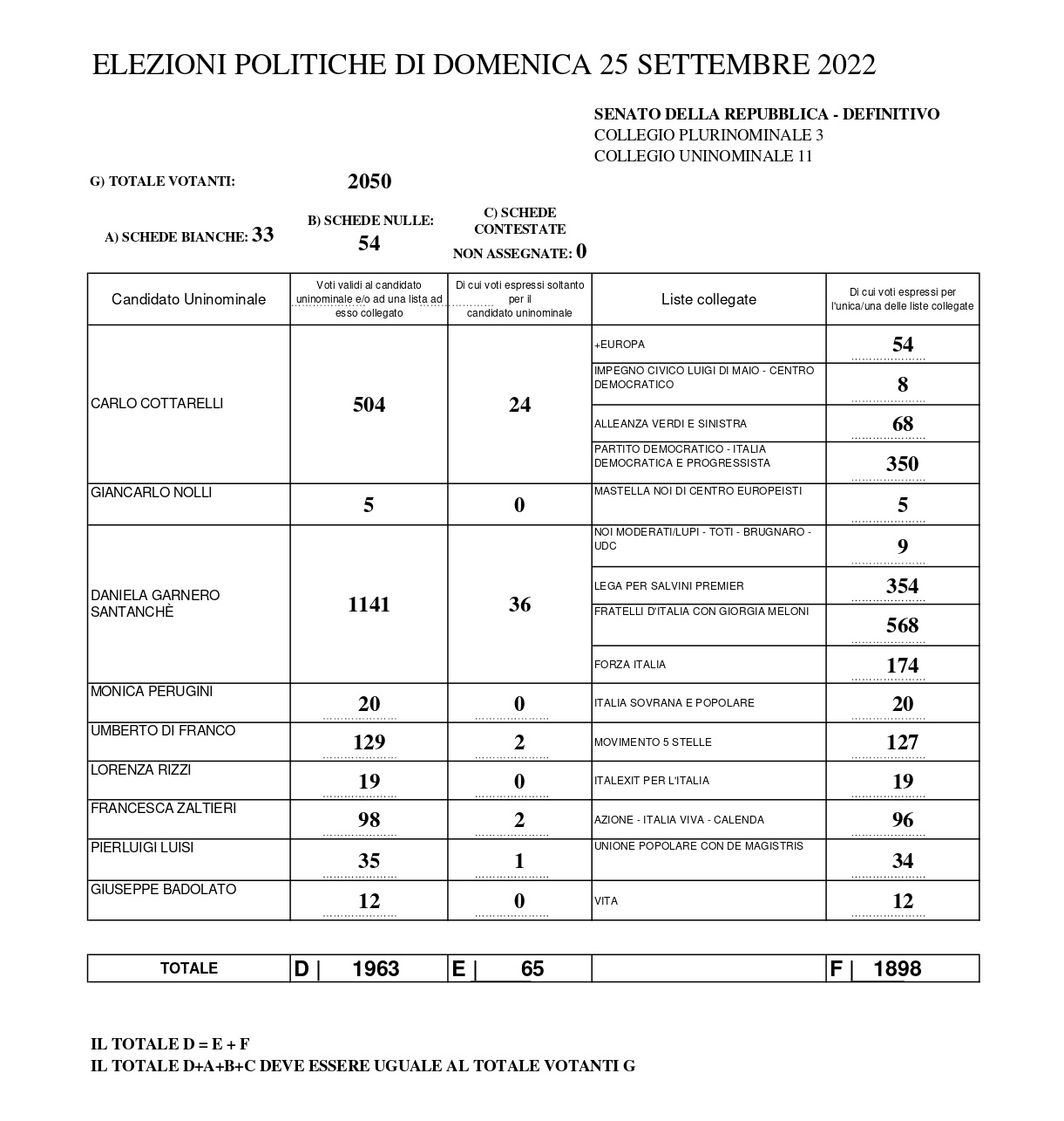 ELEZIONI POLITICHE DOMENICA 25 SETTEMBRE 2022 - RISULTATI