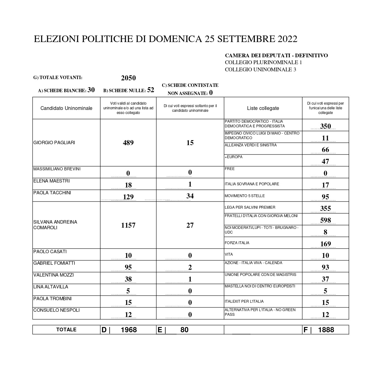 ELEZIONI POLITICHE DI DOMENICA 25 SETTEMBRE 2022