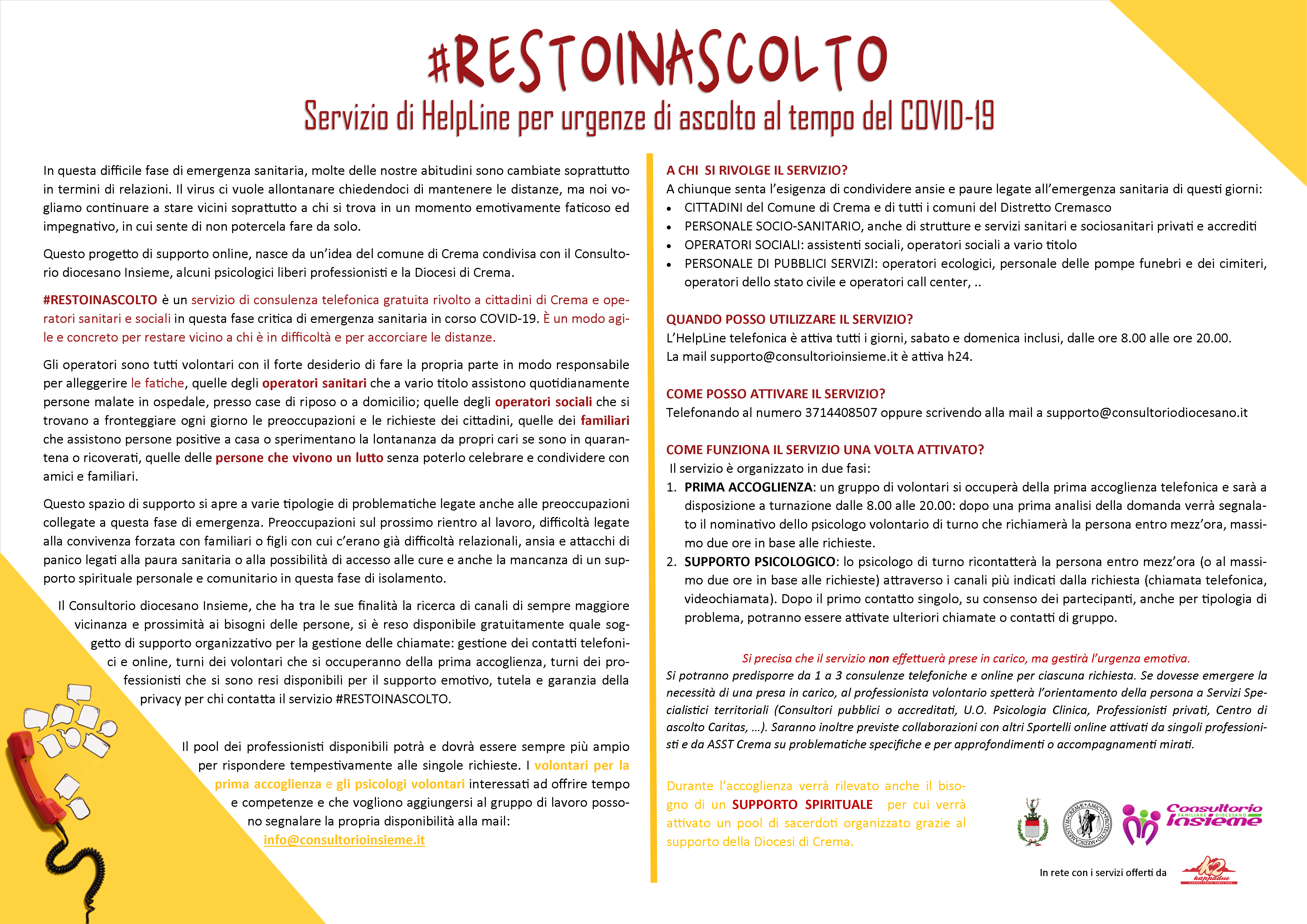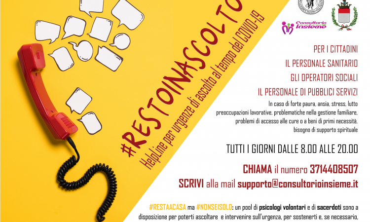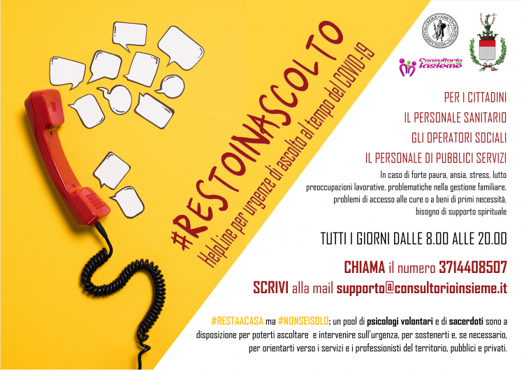 - EMERGENZA CORONAVIRUS: #RESTOINASCOLTO 3714408507 una linea telefonica per supporto psicologico e spirituale al tempo del COVID-19