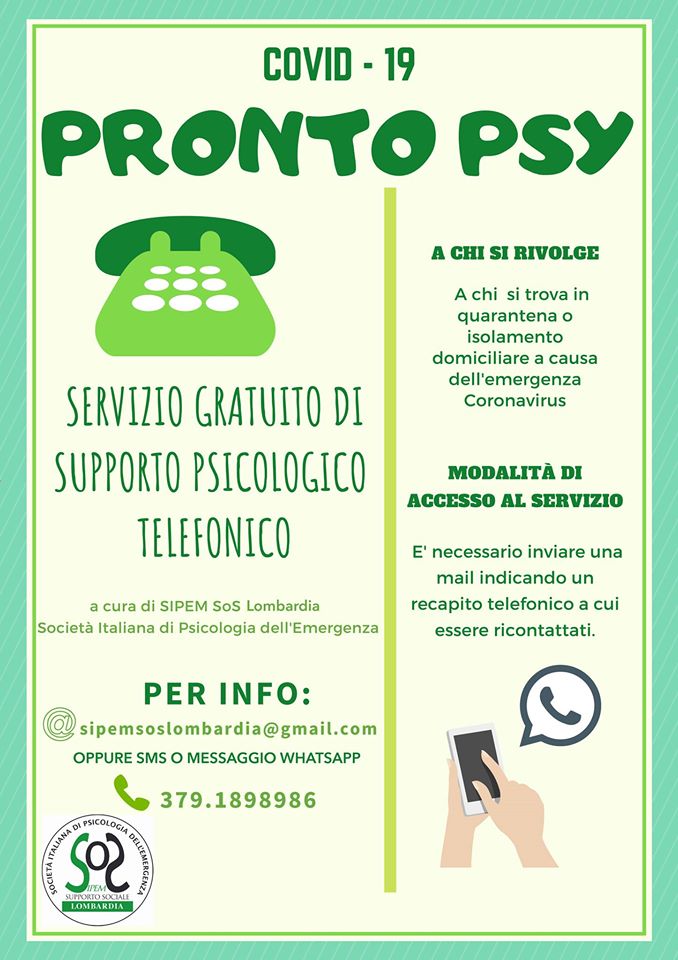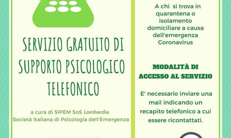 E' un servizio GRATUITO di supporto psicologico TELEFONICO offerto da SIPEM SoS - Lombardia (Associazione di volontariato di Psicologia dell'Emergenza).