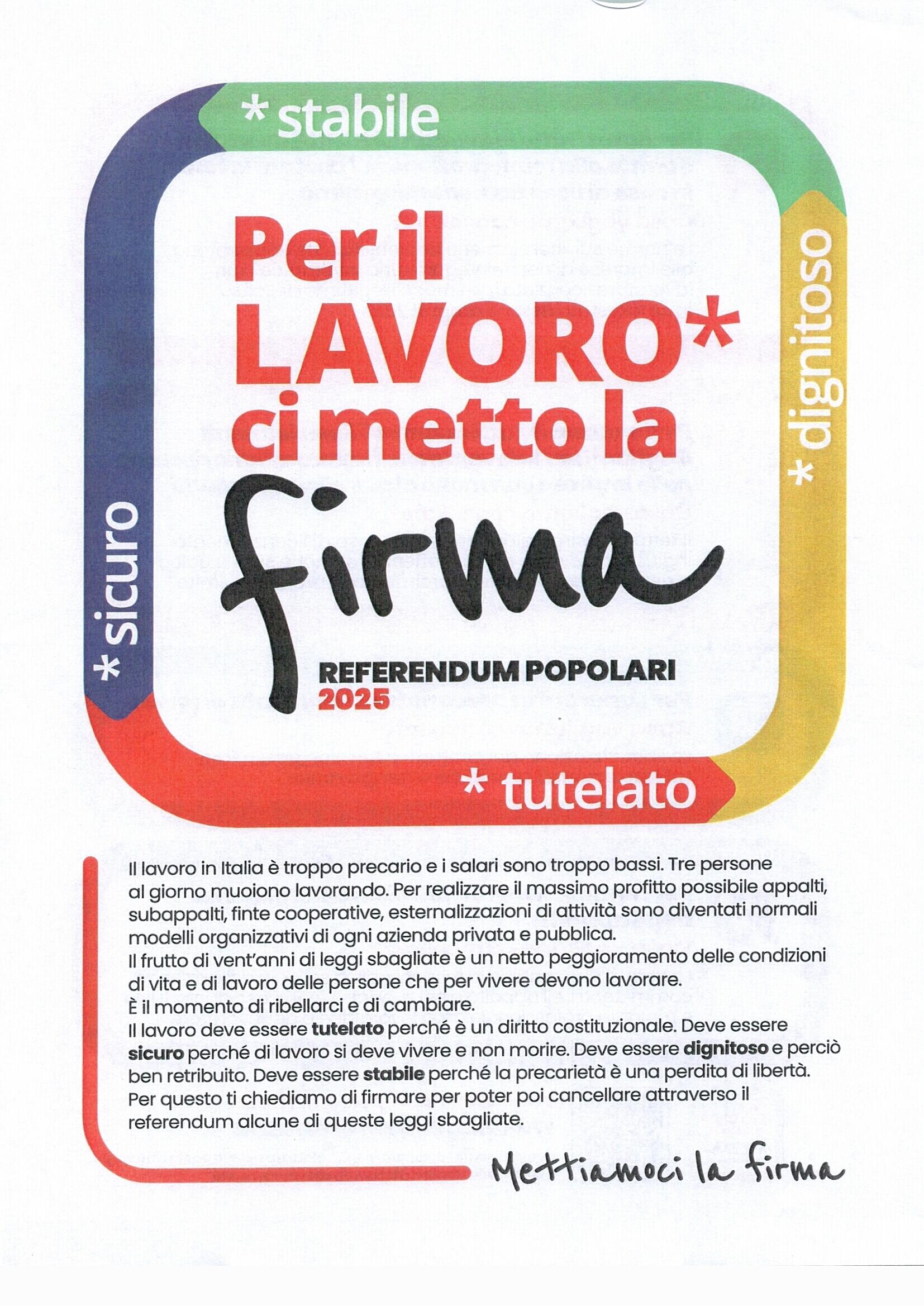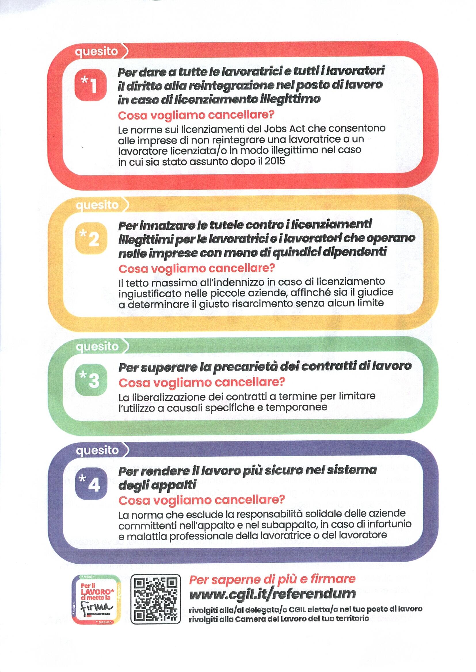 N. 4 Referendum abrogativi Annunciata in GU n. 87 del 13.04.2024 - Promotore: CGIL - “PER IL LAVORO CI METTO LA FIRMA” (richiesta reg. prot. com. n. 4149_2024)