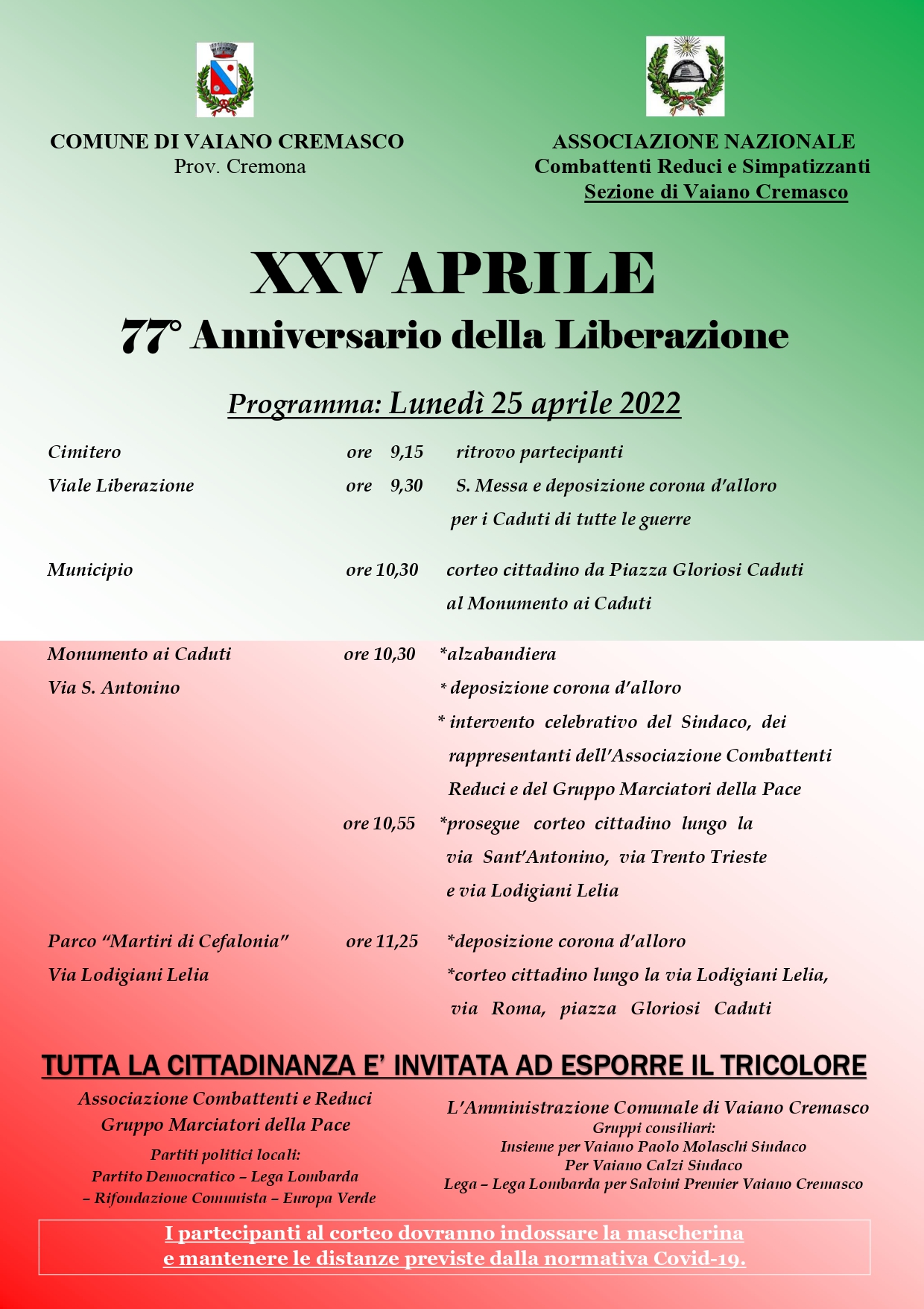 - XXV Aprile 1945-2022 77° anniversario della liberazione