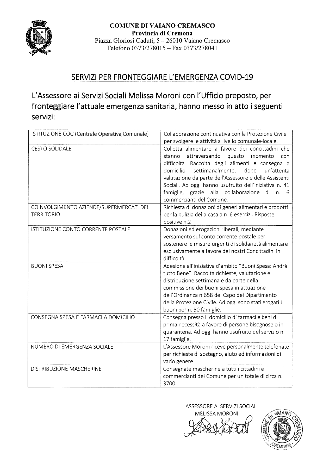 - SERVIZI PER FRONTEGGIARE L'EMERGENZA COVID-19