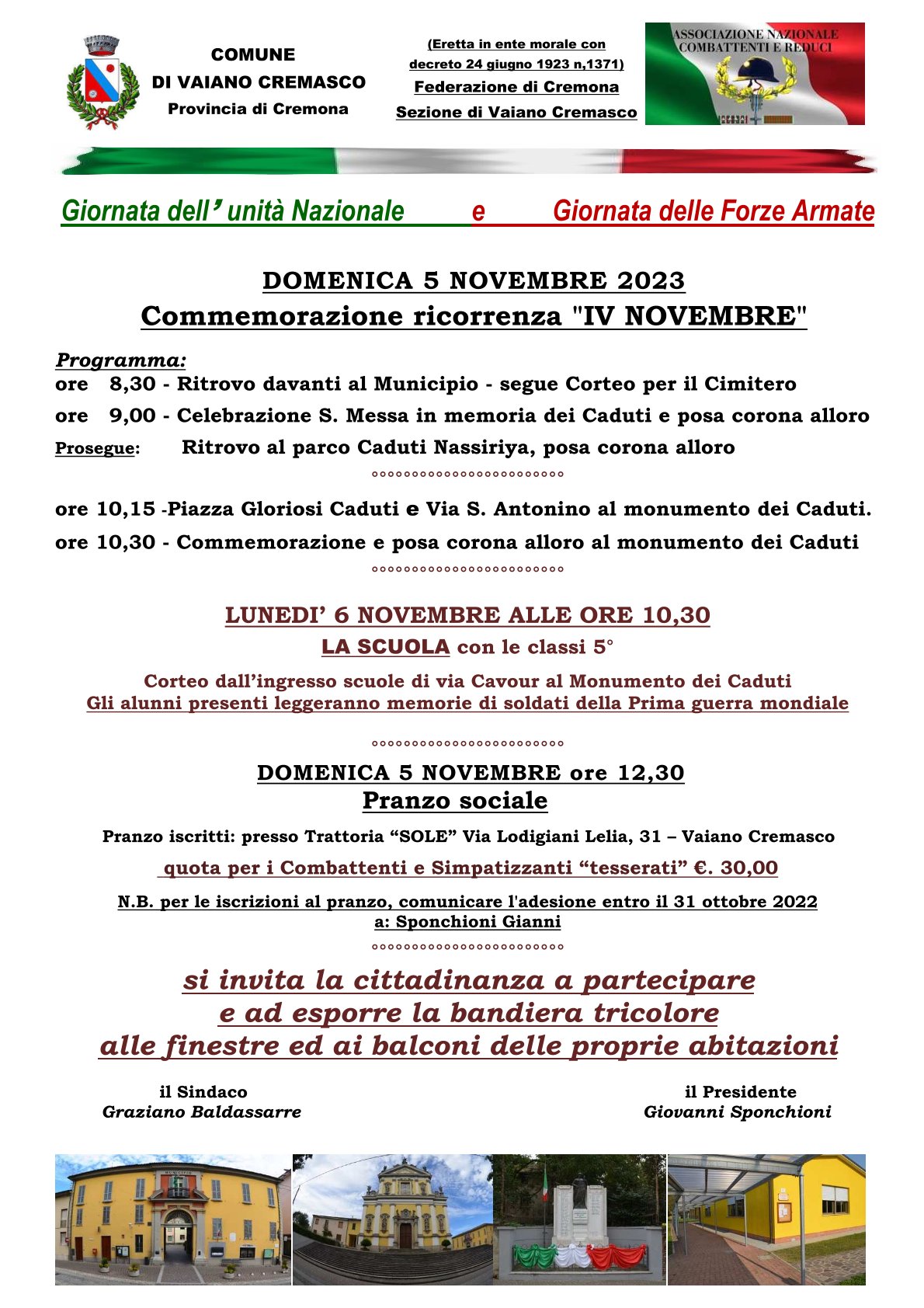 - MARTEDI 4 NOVEMBRE 2022 Commemorazione ricorrenza "IV NOVEMBRE"