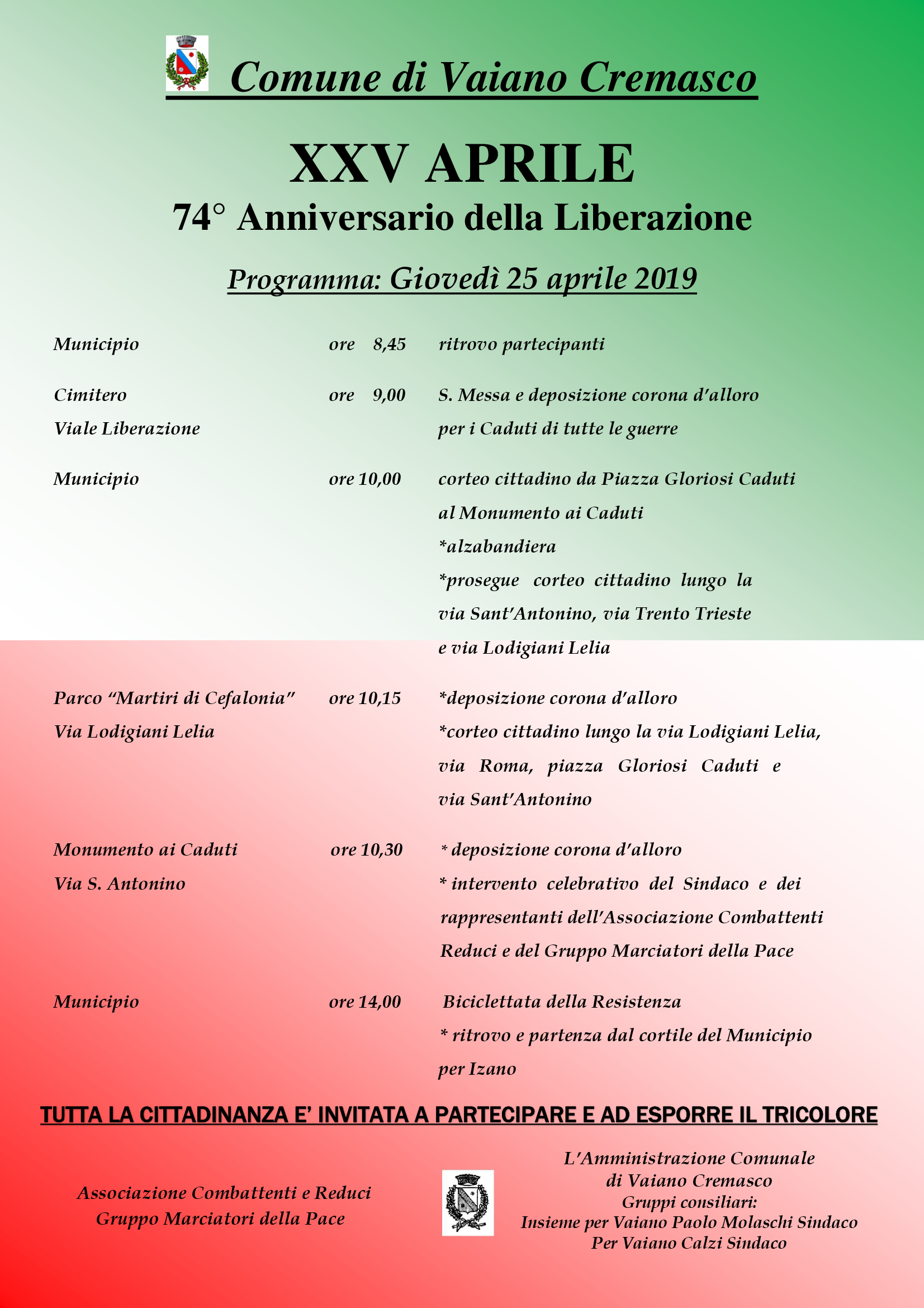 Giovedì 25 Aprile 2019, ore (Tutto il giorno)