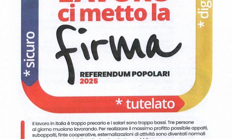 N. 4 Referendum abrogativi Annunciata in GU n. 87 del 13.04.2024 - Promotore: CGIL - “PER IL LAVORO CI METTO LA FIRMA” (richiesta reg. prot. com. n. 4149_2024)